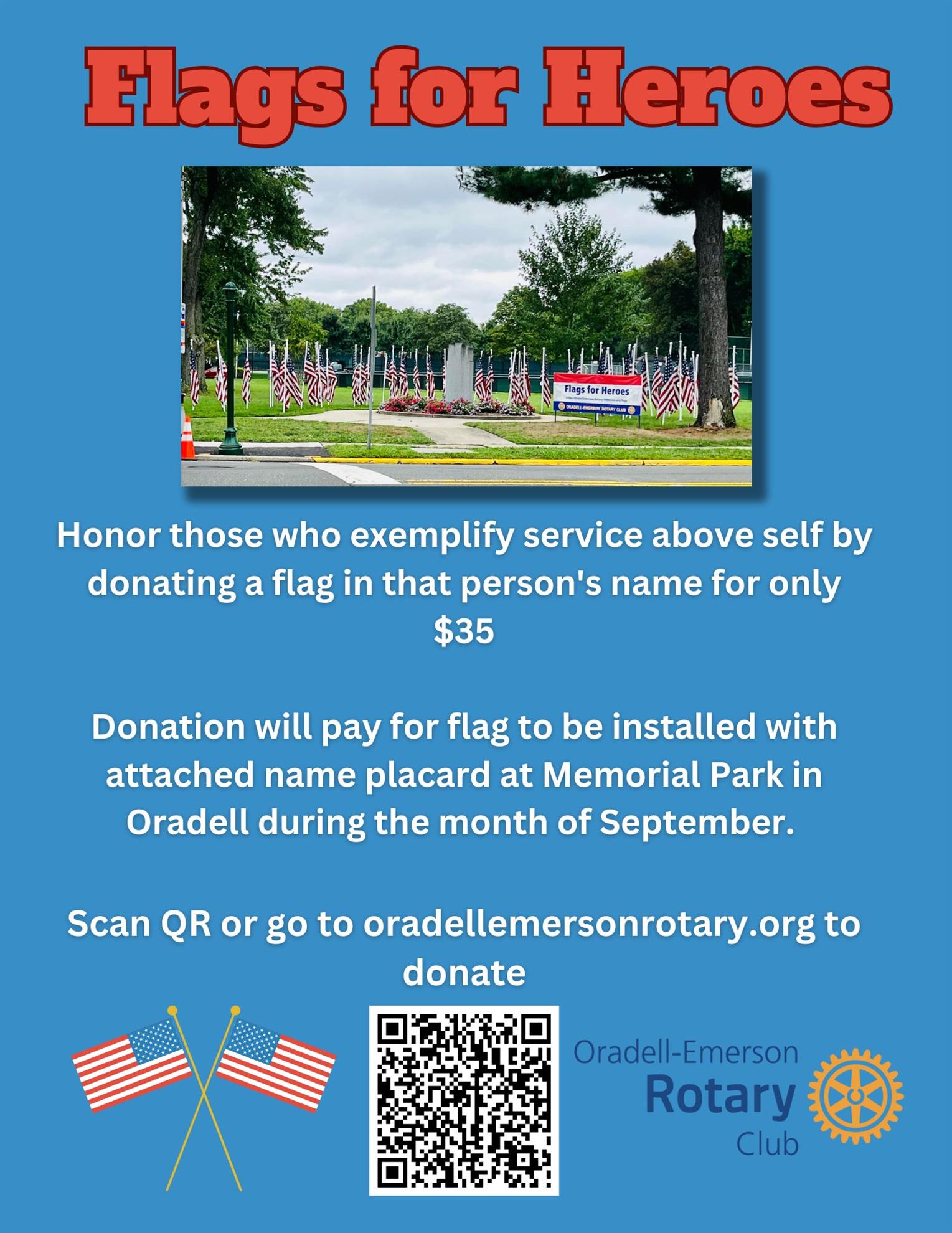 Flags will include honorees’ names showcased on individual placards. Proceeds from the fundraiser will support the Rotary Club’s local service projects and charitable initiatives.